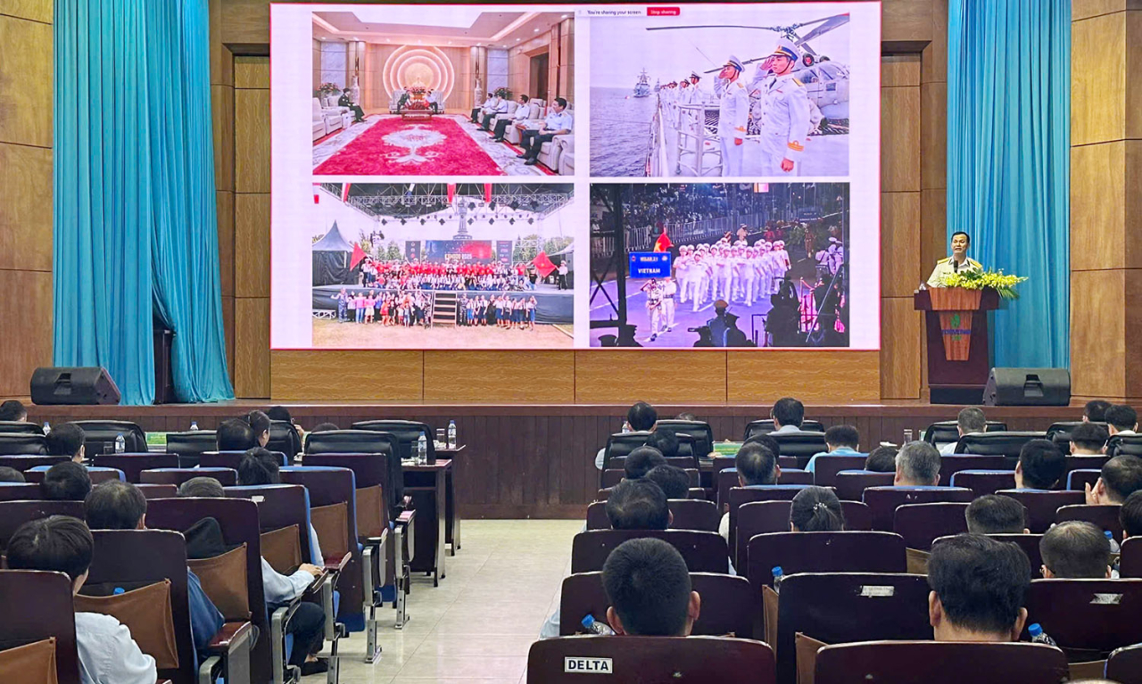 Đại tá Lưu Thanh Chương, Phó Chủ nhiệm Chính trị Vùng 3 Hải quân trình bày Chuyên đề: Tình hình biển, đảo Việt Nam trong tình hình mới
