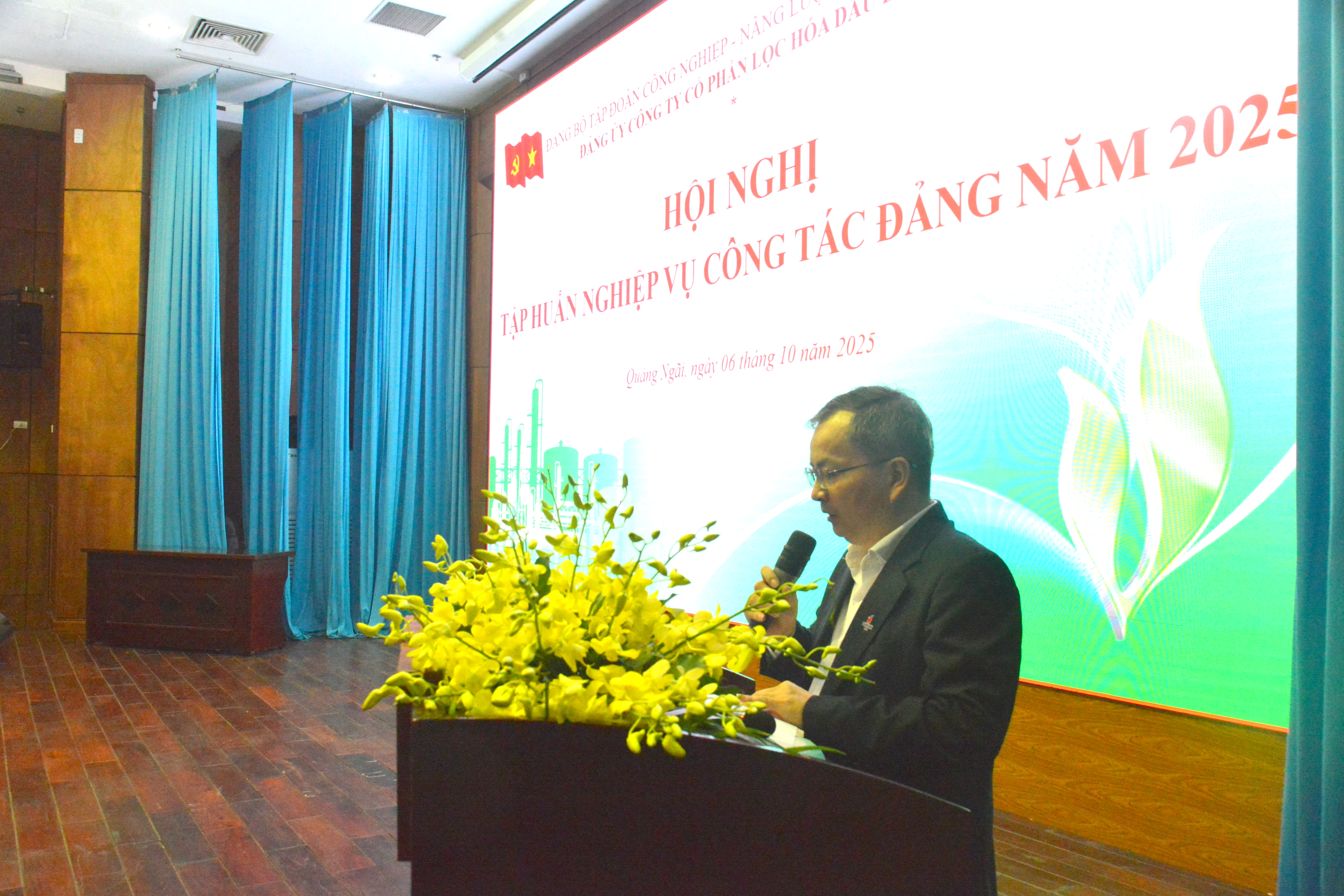 Thực hiện Kết luận số 197-KL/TW ngày 03/10/2025 của Ban Chấp hành Trung ương Đảng về thực hiện một số nội dung, nhiệm vụ trọng tâm trong hoạt động của tổ chức cơ sở đảng thời gian tới; Chương trình công tác toàn Khóa nhiệm kỳ 2025 - 2030 của Ban Chấp hành Đảng bộ Công ty Cổ phần Lọc hóa dầu Bình Sơn; nhằm nâng cao trình độ nghiệp vụ cấp ủy, cập nhật các quy định mới về công tác xây dựng Đảng tại cơ sở; tăng cường sinh hoạt chính trị thời sự về những vấn đề đảng viên quan tâm trong giai đoạn hiện nay và tiếp tục củng cố sức mạnh đoàn kết của Tổ chức với tinh thần “Một đội ngũ, một mục tiêu”, ngày 06/10/2025, Đảng ủy Công ty Cổ phần Lọc hóa dầu Bình Sơn tổ chức Hội nghị tập huấn nghiệp vụ công tác xây dựng Đảng gắn với nói chuyện thời sự chính trị chuyên đề “Tình hình biển, đảo Việt Nam trong tình hình mới” năm 2025 cho đội ngũ cấp ủy các cấp thuộc Đảng bộ BSR.