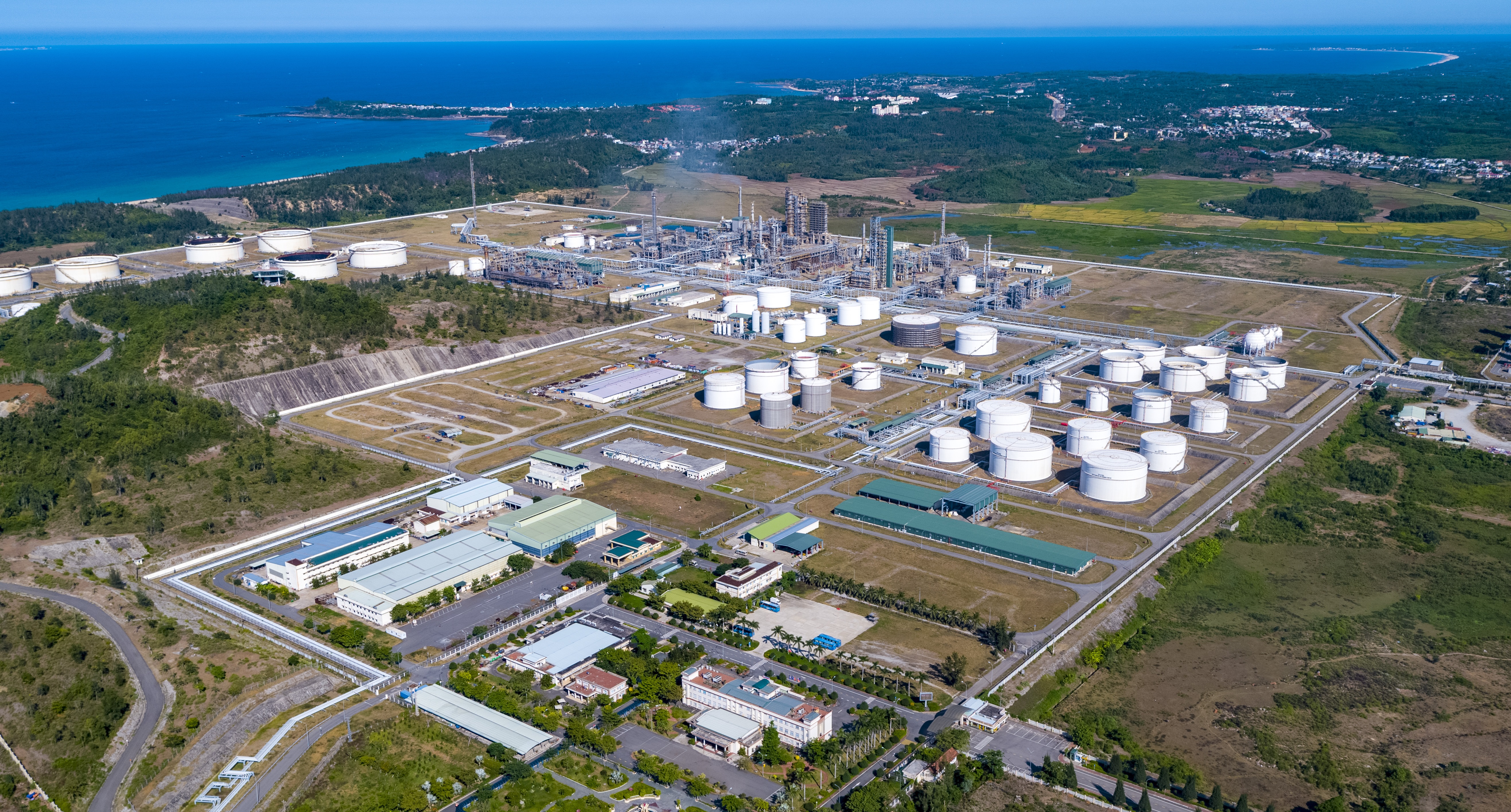 2 - Vận hành an toàn – Trong năm 2025, nhà máy lọc dầu đã chính thức cán mốc 54 triệu giờ công an toàn không có tai nạn mất ngày công – một thành tích vượt trội, khẳng định văn hóa an toàn đã thật sự thấm sâu vào từng quy trình, từng hành vi và từng quyết định của mỗi người lao động. Thành quả này không chỉ phản ánh sự tuân thủ nghiêm ngặt các quy trình kỹ thuật, mà còn thể hiện sự chủ động nhận diện rủi ro, áp dụng công nghệ thông tin vào công tác kiểm định – bảo dưỡng, nâng cấp hệ thống giám sát trực tuyến để tạo nên một phòng tuyến vững chắc bảo vệ con người, tài sản và môi trường. Ảnh: Thi PCCC tại NMLD Dung Quất.