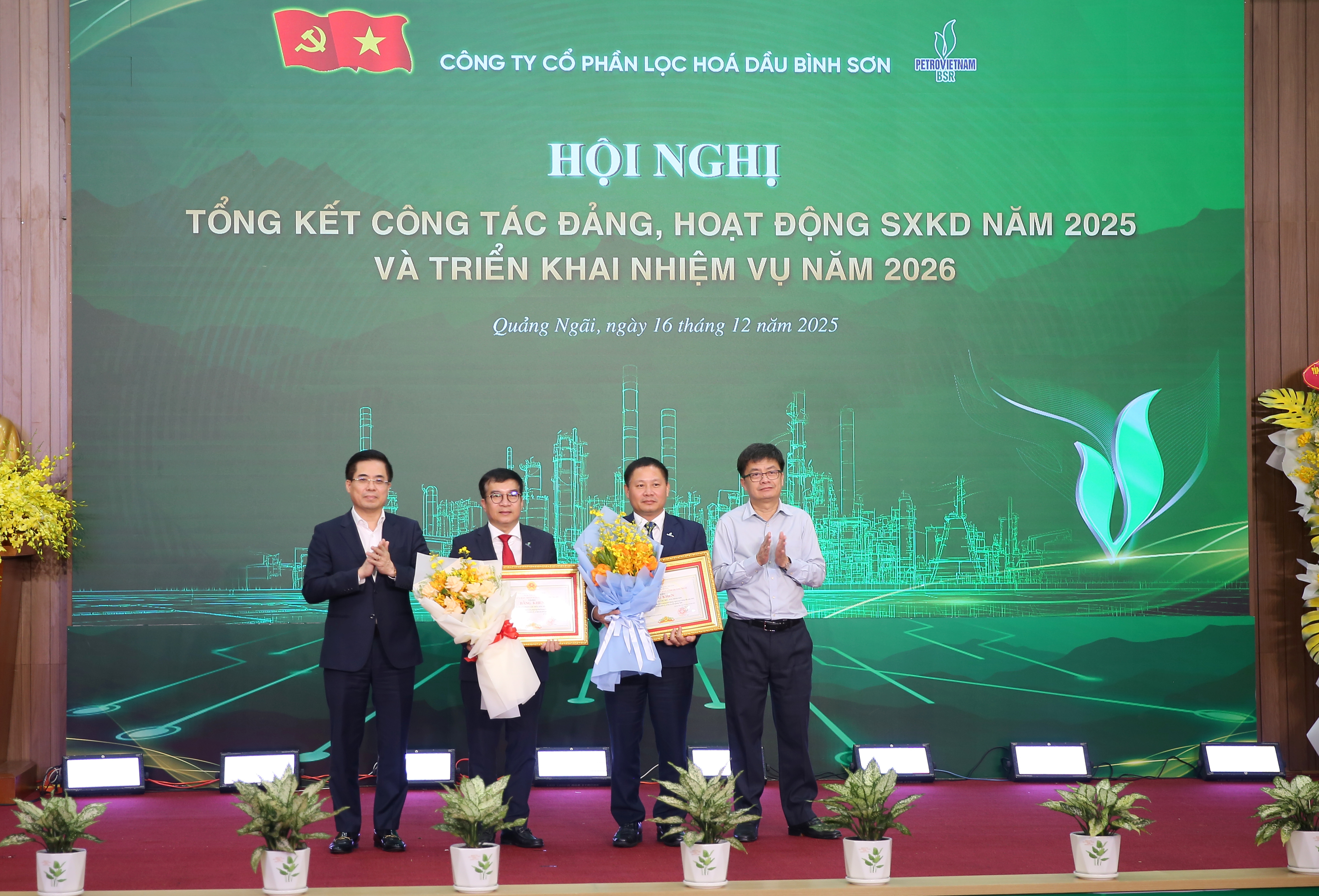 Tại phiên Hội nghị Người lao động, Tổng Giám đốc Công ty cổ phần Lọc hóa dầu Bình Sơn tặng Giấy khen cho 08 tập thể và 15 cá nhân xuất sắc tiêu biểu trong năm 2025.