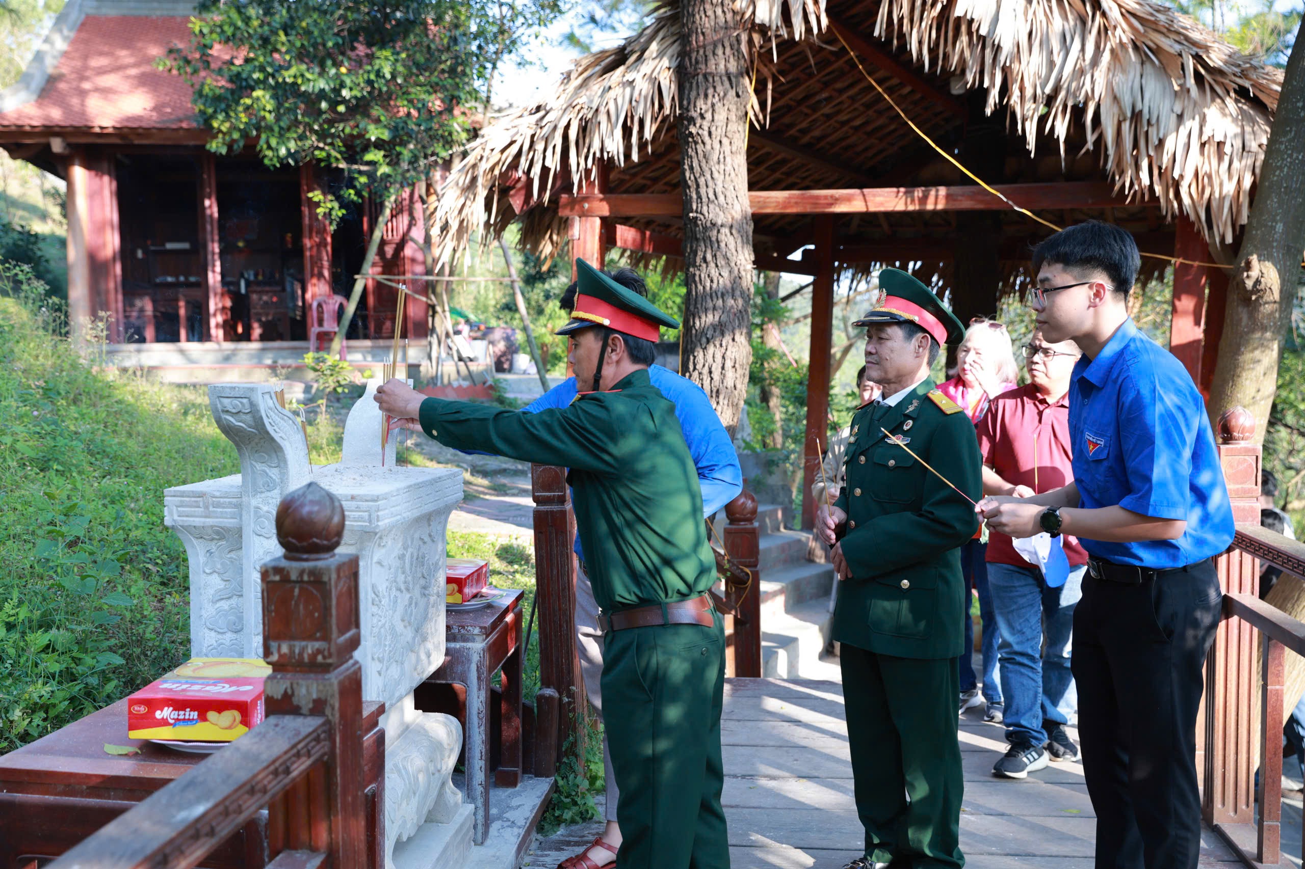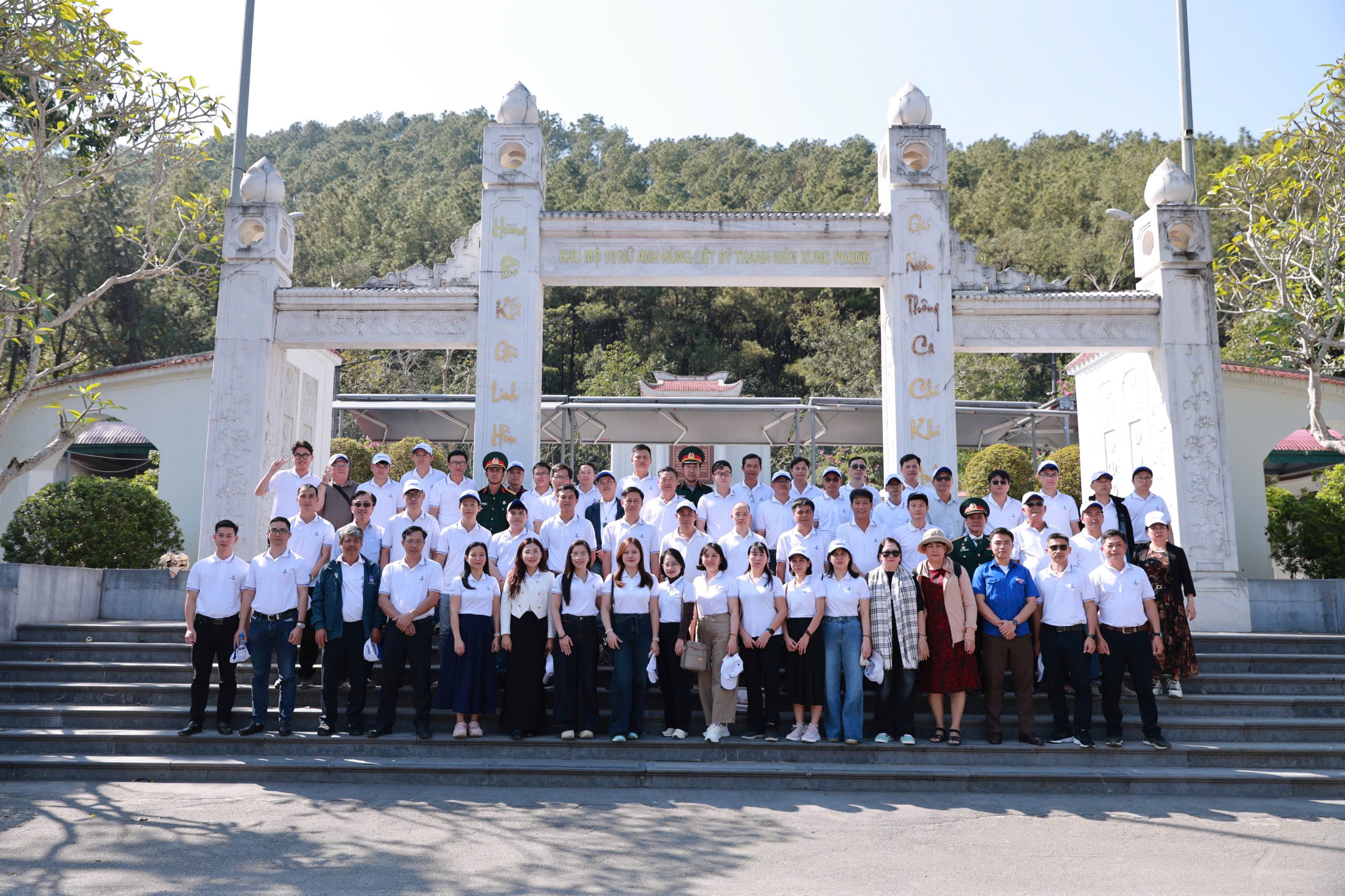 Điểm đến tiếp theo là Ngã ba Đồng Lộc (Hà Tĩnh) – “tọa độ lửa” một thời. Sau khi xem phim tư liệu, đoàn đến Nhà bia tưởng niệm Thanh niên xung phong toàn quốc dâng hương. Những hàng tên khắc dài trên đá lạnh khiến lòng người nhói đau: họ đều rất trẻ, đã hiến trọn tuổi xuân cho Tổ quốc.
