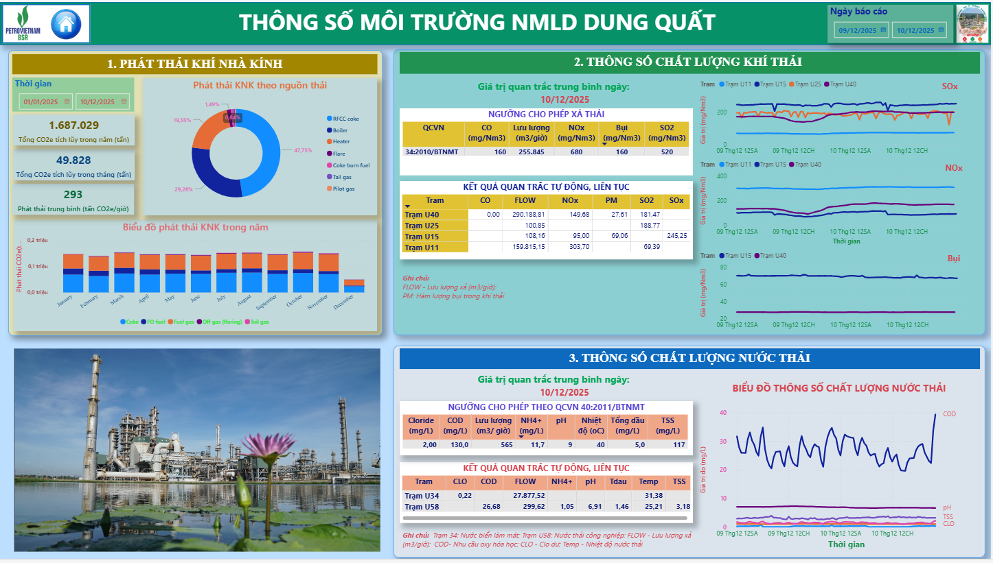 THÔNG SỐ CHẤT LƯỢNG MÔI TRƯỜNG NHÀ MÁY LỌC DẦU DUNG QUẤT NGÀY 10/12/2025