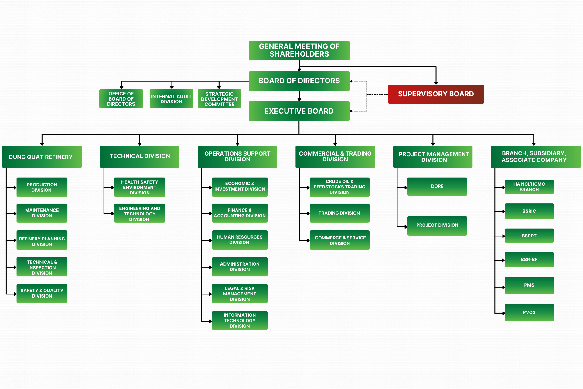 Binh Son Refining and Petrochemical Joint Stock Company (BSR), formerly known as Binh Son Refining and Petrochemical One-Member Limited Liability Company, was established on May 9, 2008, under Decision No. 1018/QD-DKVN of Vietnam Oil and Gas Group (PetroVietnam). BSR is entrusted with the responsibility of receiving, managing, and operating the Dung Quat Refinery, playing a reopening role and laying the foundation for the development of Vietnam's petrochemical refining industry. It is also a training ground for high-quality human resources in this field.